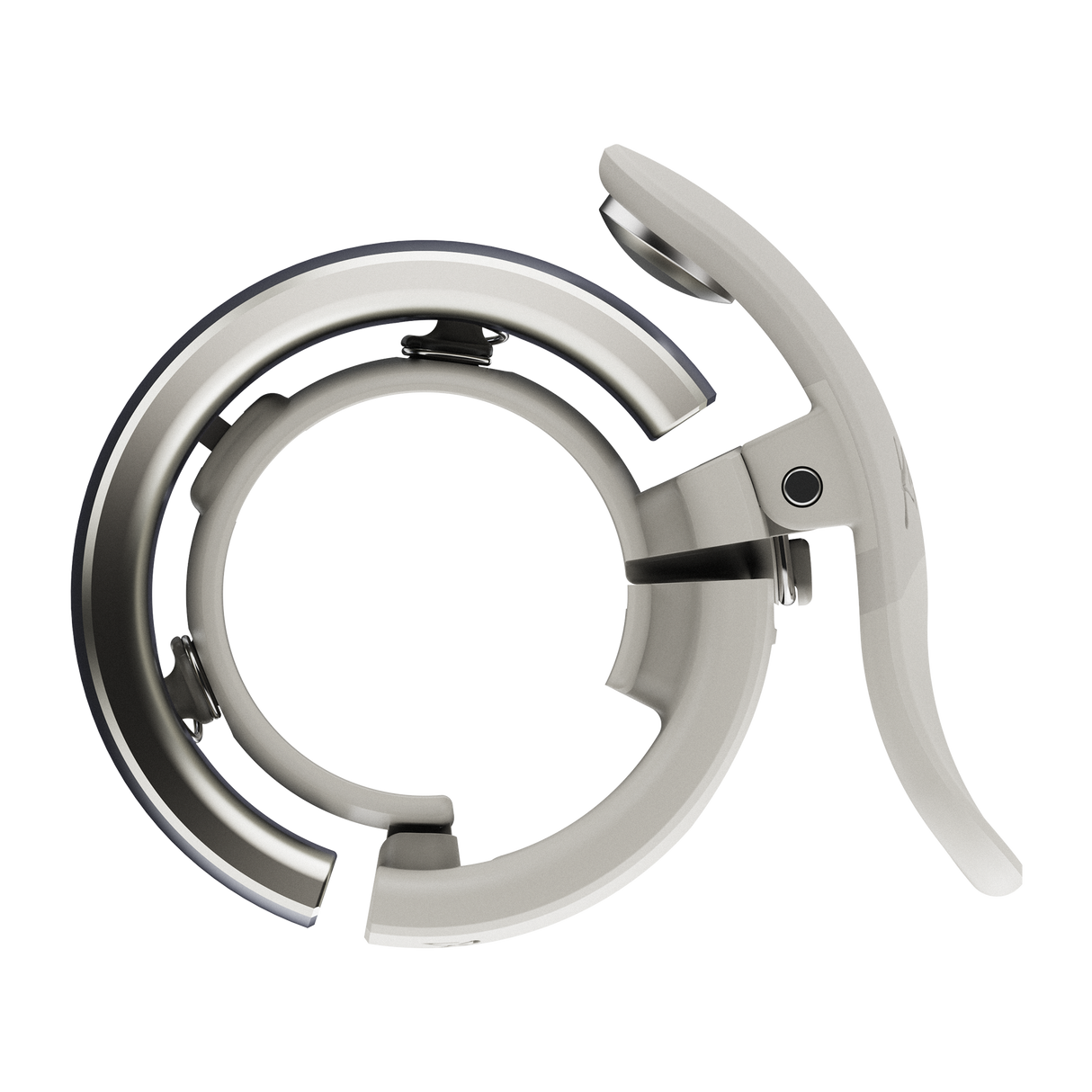 The Knog Oi Prima Bike Bell is here to make your rides safer and sound sweeter. Its unique wrap-around design neatly integrates onto your handlebars, making it almost invisible. Powered by innovative WAVETEK hammer technology, this bell produces a consistently beautiful and loud tone. Built with a robust spring, it's designed to withstand countless adventures and daily commutes. Whether you're navigating urban jungles or scenic routes, its pleasant chime cuts through the noise. Available in two sizes, ensuring a perfect fit for various handlebar diameters. Small shims and spacers are included with large bells for that snug, secure attachment. Get ready to announce your presence with style and clarity. It's the little detail that makes a big difference.